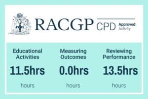 This is a hybrid event with 25hrs of CPD approved by RACGP- including 11.5hrs of Educational Activities + 13.5hrs of Reviewing Performance.Attendance will be uploaded to your CPD portal on your behalf.